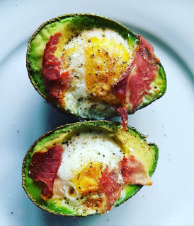Halveer de avocado en haal de pit er uit. Maak het holletje van de pit iets groter met een lepel zodat er een ei in past. Breek in ieder holletje een ei. Voeg peper en zout toe. Leg de couburgerham in stukjes op de avocado en het ei. Ook lekker om er nog wat geraspte kaas over te strooien.